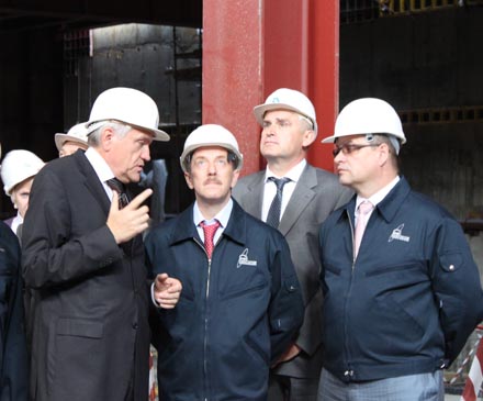 Губернатор Алексей Гордеев осматривает возведение АЭС-2.