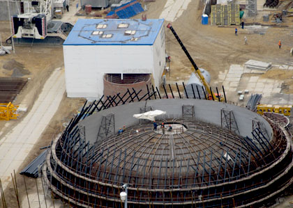 В числе значимых событий 2011-го можно назвать возведение цилиндрической части внутренней защитной оболочки реакторного здания энергоблока N1, которая будет закрываться куполом (сборка этой 400-тонной конструкции подходит к завершению).