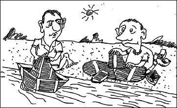 Решил туфли себе починить. Сунул их в пакет. И - к сапожнику. Смотрю, а он стельки и дратву в сторону откинул, ноги укрыл не фартуком, а огромным листом бумаги. Чего-то пишет. Раньше у него изо рта гвозди торчали, теперь шариковые ручки разных цветов. Пот с него, бедолаги, градом катится. Дело, видно, непривычное. Подхожу. Жалуюсь: - Туфли каши просят. Он даже ухом не повел. Только яростнее застрочил. Я кашлянул. - Сделаете ремонт или нет? Он отмахнулся: мол, не мешай. Я вгляделся: матушки! В той белой простыне - бесконечные канцелярские графы. Бормочет, как в угаре: - Наименование... количество принятых... количество выданных... объем... выручка... прирост... Не мешай. Отчетность по каблукам составляю. Не видишь, что ли? - Мне завтра зайти? - До завтра не успею. Каблуки подобью, подметки зачну считать и подводить баланс по шилу: сколько раз им кольнул и во что. - Тогда послезавтра? - Что ты!? - замахал он руками, перепачканными чернилами. - Послезавтра - подковки на счету. Налоговая каждый день цифры требует. - За что же вы отчитываетесь, если не работаете? - Бери вон молоток, гвозди да чини себе сам. А я твою работу в свой отчет включу. Подбил я себе башмаки, а заодно и ему. Заплатил. Тут увидал, что от его будки чернильный ручеек струится. Такой игривый, веселенький. Куда он устремляется? - думаю. Пошел вдоль ручья. Вывел он меня на сельскую дорогу. Увидел грузовую машину. Она стояла, потому что шофер сидел. Рядом с машиной. И писал. Я спрашиваю: - Не подбросишь до города? - Некогда. ГАИ хочет знать, сколько у меня было левых поворотов, сколько - правых, количество торможений в единицу времени, периодичность обгона и так далее. Слились оба чернильных ручейка в единый, и стал он еще шире. Катит свои химические воды куда-то вдаль. За горизонт. Пошел за ним. Сунулся к фермеру - пишет цифирь для Управления сельского хозяйства. Зашел к агроному - строчит для министра сельского хозяйства. Глянул в силосную яму - там какой-то дед бросил вилы и на ноутбуке отчитывается в разрезе силоса. Сколько за час навильников он бросил удачных, сколько неудачных и почему. Пенсионный фонд у него срочно сводку затребовал, а то пенсию отымет. Пошел я дальше. Увидел я, куда впадают все эти ручьи. Они впадают в бумажную реку. Могучая река, глубокая. Как Волга. Но посевы орошать ею нельзя. Вода в ней синяя-синяя, чернильная, ядовитая, а берега, как в граните, - в важных печатях и горделивых подписях. Плывут по ней всякие входящие и исходящие: справки, отчеты, статистика, указания, запросы, уточнения и т.д., и т.п. Но впадает эта Волга не в Каспийское море, а в Москву - реку. А там сооружена мощная плотина. Столица, не читая, возвращает бумажную реку обратно, она дробится на ручейки, они заворачивают в свои же города и веси. Это называется: круговорот чернил в природе. Одно страшновато: вдруг ту плотину прорвет и нашу столицу затопит?