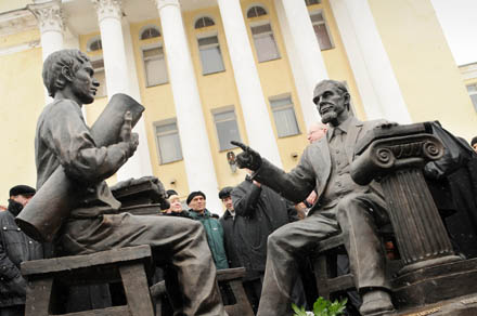 - Это надо у Суровцева и Бубнова спросить! - ответил он. - Именно Игорю Суровцеву и архитектору Сергею Гурьеву принадлежит идея. Сколько времени ушло на реализацию проекта? Около года! Потом проект губернатору показывали, модель скульптуры можно было посмотреть в фойе вуза. Это, конечно, собирательный образ. Сам-то я Троицкого не видел, к сожалению. Но родственники говорят, что похож. Им понравилось, и это, пожалуй, главное.