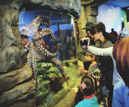 Вторая экспозиция перенесет посетителей в суровый мир полярных морей, где обитают гигантские крабы, осьминог Дофлейна, удивительные виды рыб. А скоро здесь появятся пингвины и морские котики.
