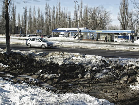 Вчера, 25 февраля, наш фотокорреспондент побывал на месте злополучной аварии и лично убедился, что утечка воды устранена, водопроводная труба вновь закопана.