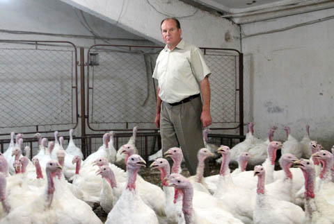 Николай Гирчев на индюшиной ферме