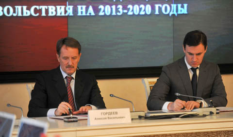 Затем между Правительством Воронежской области и ОАО "Россельхозбанк" было подписано Соглашение о взаимодействии по реализации мероприятий государственной программы развития сельского хозяйства и регулирования рынков сельхозпродукции, сырья и продовольствия на 2013-2020 годы. Под документом подписи поставили губернатор Алексей Гордеев и председатель правления ОАО "Россельхозбанк" Дмитрий Патрушев.