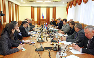 24 октября в Москве председатель Воронежской областной Думы Владимир Ключников, заместитель председателя Владимир Нетесов, председатель Комитета по бюджету, налогам и финансам Александр Вериковский и председатель Комитета по собственности и тарифам Петр Семенов встретились с делегацией Сената Генеральной Ассамблеи Уругвая.