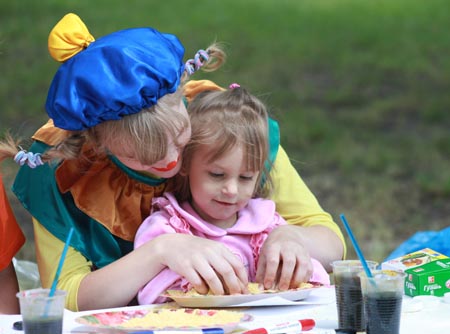 рисуют на асфальте. А еще их развлекали клоуны. Праздник назывался "Подари ребенку радость!" .