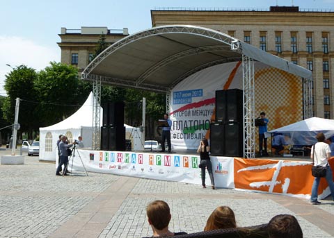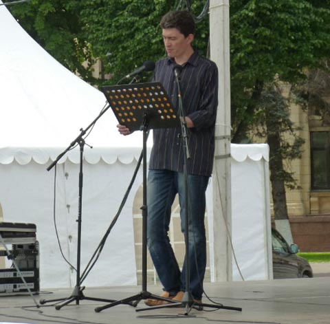 И можно было понять волнение руководителя дирекции проходящего в Воронеже II Международного Платоновского фестиваля искусств Михаила Бычкова, который заметно волновался: хорошо ли слышны зрителям голоса чтецов? Много ли людей на площади соберутся? Впрочем, его волнения как устроителя представления оказались напрасными. Людей собралось неожиданно много.
