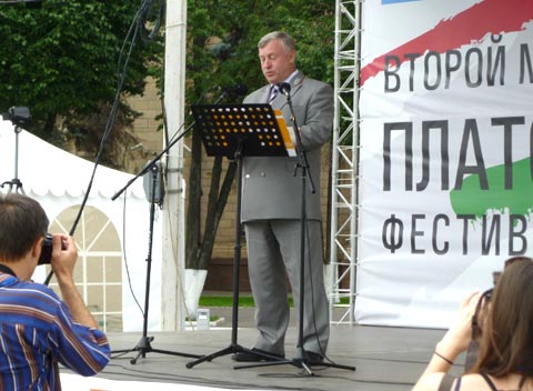 - Я приятно удивлен, - сказал автору заметок московский театральный критик, член Совета по присуждению Платоновской премии в области литературы и искусств Александр Вислов. - Думал, нас будут слушать, от силы, пара-тройка человек. А площадь, посмотрите, заполнена, люди не расходятся, слушают Платонова! В очередной раз восхищаюсь воронежцами.