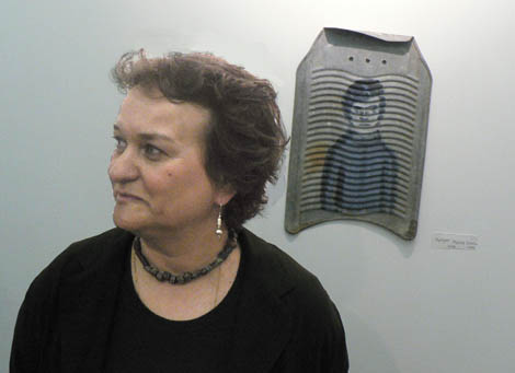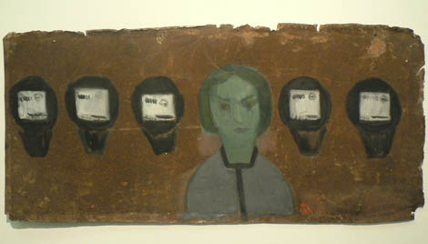 Вместо холста художница использует необычные материалы - старую фанеру, ржавые куски железа и даже обломки дверей. Их фактура - дыры, царапины, трещины - оказывается неотъемлемой частью изображаемого Ириной Затуловской мира.