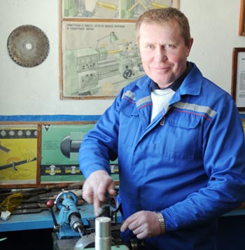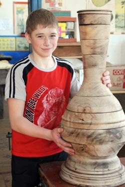 Восьмиклассник Алексей Овчаренко под руководством Вячеслава Григорьевича за три месяца выточил на токарном станке двадцатикилограммовую вазу. Сейчас в планах мальчишки - раскрасить ее и поставить в холле школы.