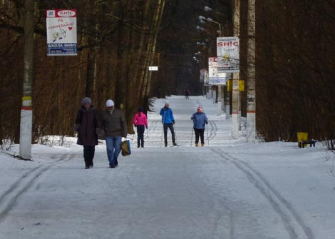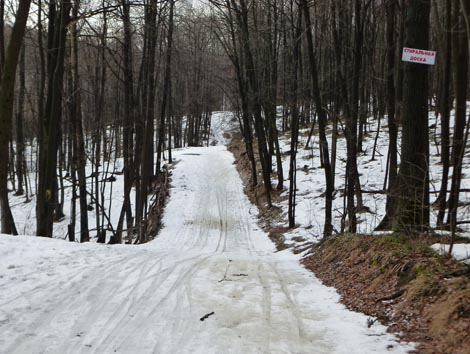 Под ногами уже не снег, а снежная каша, в воздухе давно уже ощущается запах весны, пригорки - в проталинах, но... Отважные лыжники преодолевают склоны, носящие весьма жизнерадостные и оптимистические названия - "Стиральная доска", "Кость", "Корыто". Им зимы оказалось мало.