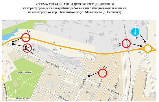 С 2 апреля перекрывается движение транспорта по автодороге вдоль реки Песчанки от переулка Отличников до улицы Менделеева, сообщает Информационно-аналитическое управление горадминистрации.